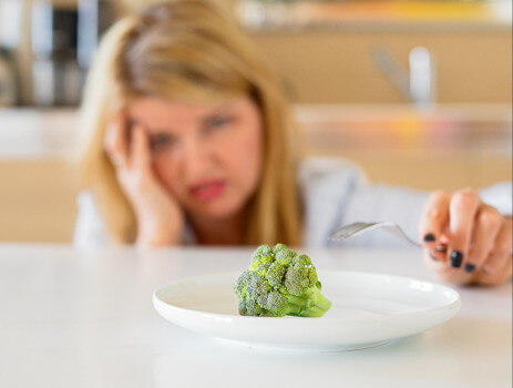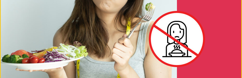 Den plågsamma känslan av hunger har en deprimerande effekt på en person och är en orsak till sorg och ilska. Ångern som följer på att ge efter för frestelsen att äta orsakar känslor av skam och självförebråelser. Ett tvångsmässigt fokus på kost och vikt kan leda till en ohälsosam inställning till mat och till och med ätstörningar (som bulimi eller anorexi). -