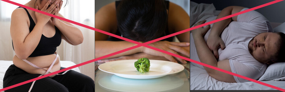 Om viktminskningsdieter fungerade skulle 70 % av svenskarna INTE lida av övervikt. Det är välkänt hur mycket uppoffringar och känslomässig smärta sådana dieter kostar. Och det är inte slutet på deras nackdelar, för det finns en hel mängd av dem: